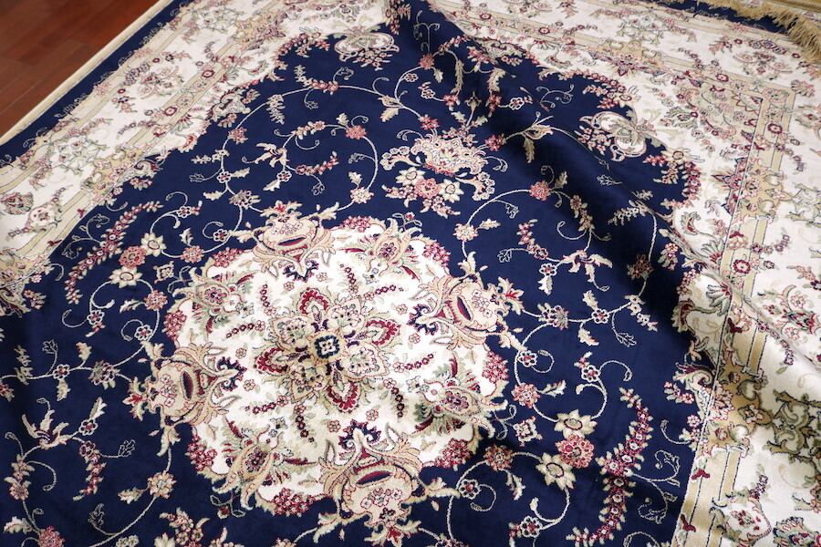 ペルシャ柄絨毯 200×290 新品未使用 6畳 大判ラグ カーペット 訳あり ネイビー